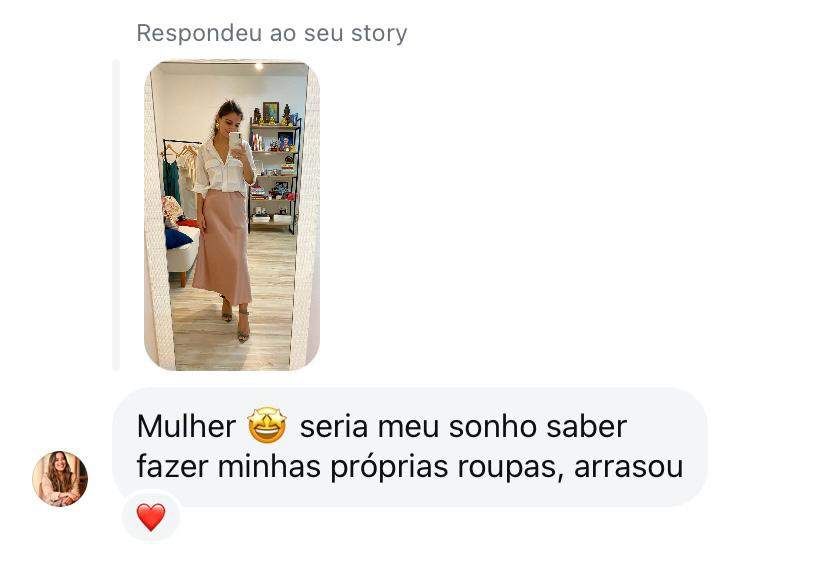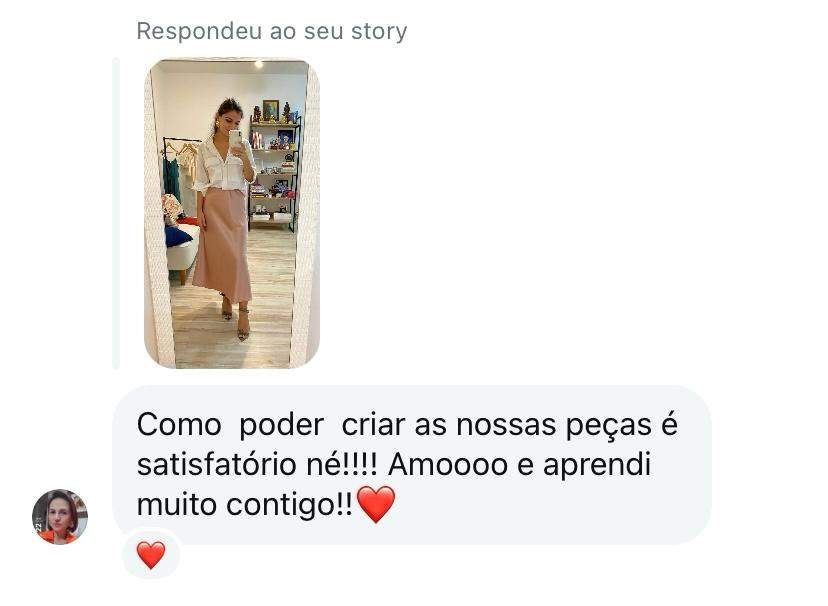 O curso é voltado para te ensinar sobre roupas. Temos pessoas que usam esse conhecimento, como arte, como cura, como encontro com o feminino, e temos pessoas que aproveitam essa inteligência para ganhar dinheiro produzindo.