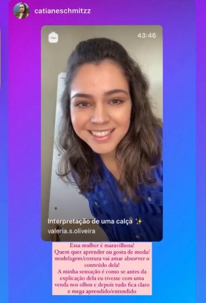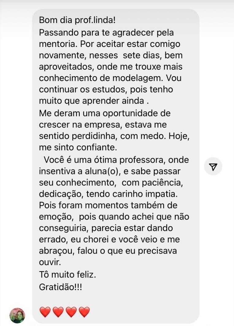Agora, se você quiser saber como eu adquiri esse conhecimento para vir aqui te passar, eu construí minha carreira trabalhando como professora em instituições privadas e federais. Atuei como modelista em indústrias de beachwear, fitness, jeans, alfaiataria, festa, em segmentos de feminino, masculino e infantil, me aventurei no empreendedorismo, e hoje também presto consultorias. Me dediquei, busquei conhecimento e me aperfeiçoei em renomadas instituições brasileiras e também da Europa.
